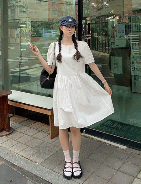써니클라우디 圆领 蓬蓬裙 半袖 连衣裙 87294