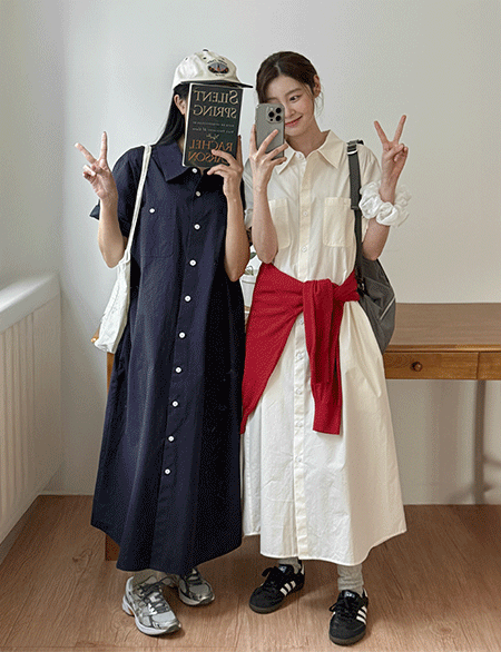 애니잇 宽松 领 衬衫 长款 连衣裙 87321