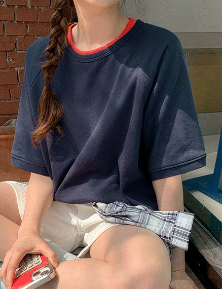 애프리 宽松 插肩 半袖 套头卫衣 87318