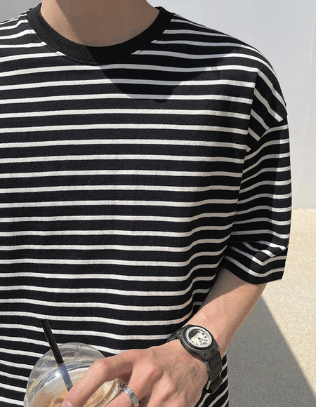 비슬린 条纹 短袖T恤