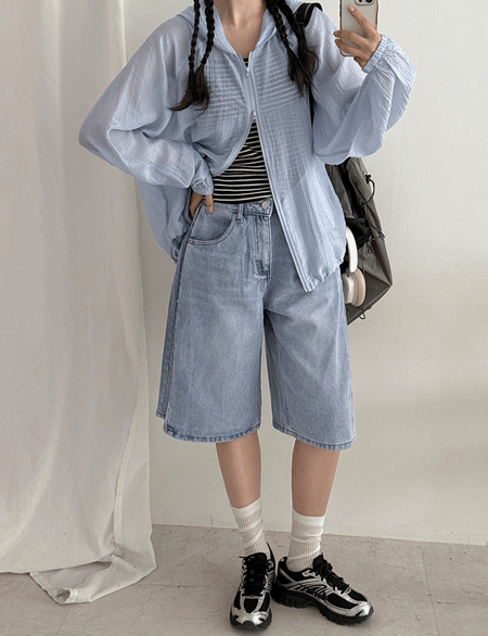 [3XL까지] 사이드패널 버뮤다 牛仔色 短裤 87360