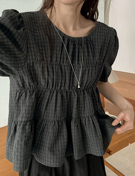 로우셀 格子 波浪群/喇叭裙 女衬衫 87372