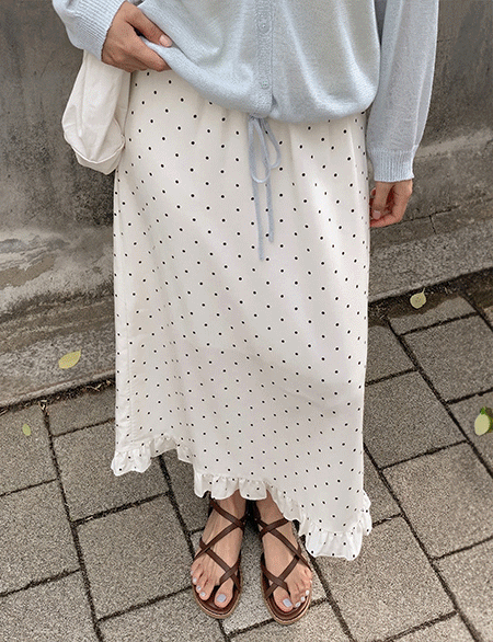 핀터무드 圆点 长款 松紧带 裙子 84211