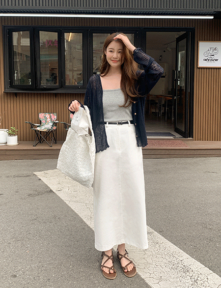 키녹트 裂縫 뒷밴딩 长款 裙子 87454