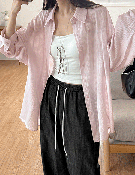 [살안타템] 에어리모어 条纹 宽松 透明 衬衫 87469