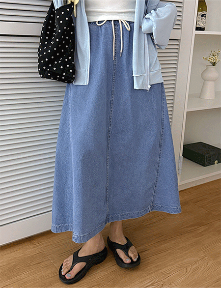 벨리브 松紧带 波浪群/喇叭裙 牛仔色 长款 裙子 87524