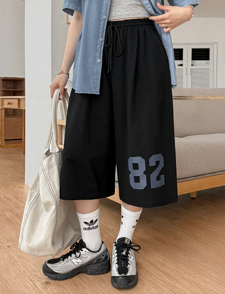 넘버링 印刷 松紧带 七分裤 버뮤다 宽 短裤 87520