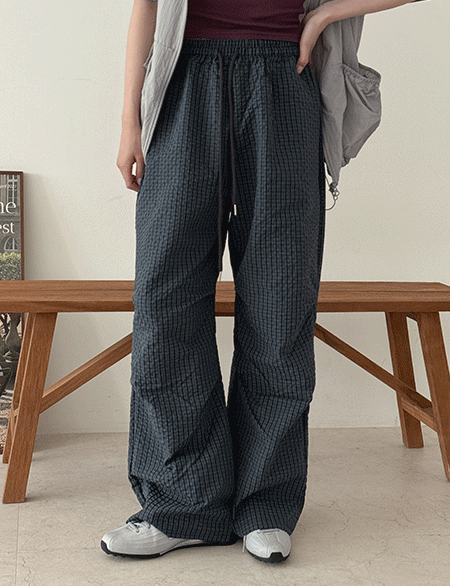 링퀴 松紧带 格子 宽 바스락 短裤 87499