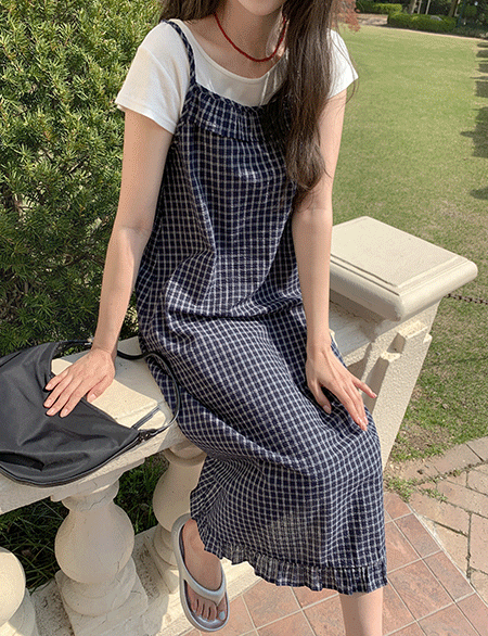 마로나 格子 뷔스티에 长款 连衣裙 87648