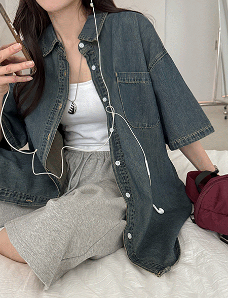 라페센 宽松 半袖 牛仔色 衬衫 87564