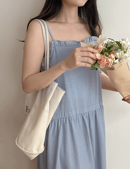 로티크 褶皱 格子 뷔스티에 波浪群/喇叭裙 长款 连衣裙 87625
