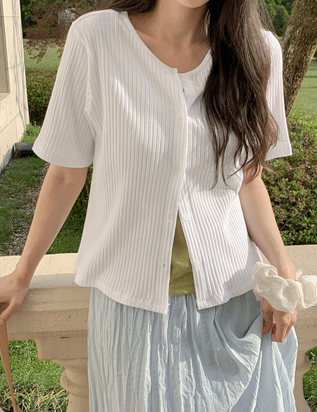 부들리 竖纹 圆领 半袖 开衫 87651