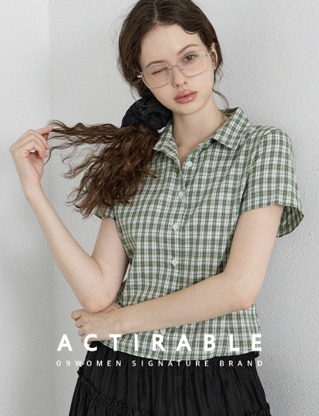 리드니 格子 线条 7分裤 半袖 衬衫 87714
