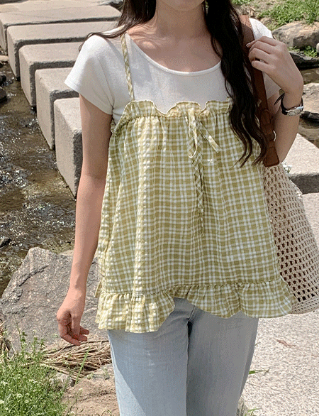 베티 格子 褶皱 蝴蝶结 뷔스티에 87702