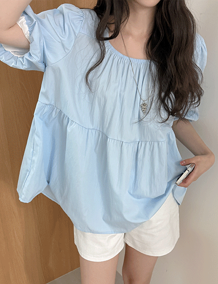[09초이스] 러브미 松紧带 스퀘어 泡泡袖 女衬衫 87814