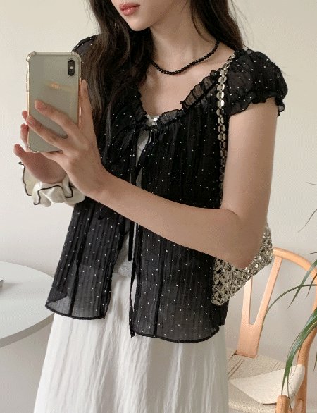이스벨 真丝 圆点 蝴蝶结 背心 女衬衫 87761