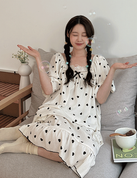 하티 蕾丝 스퀘어 泡泡袖 . 连衣裙 87707