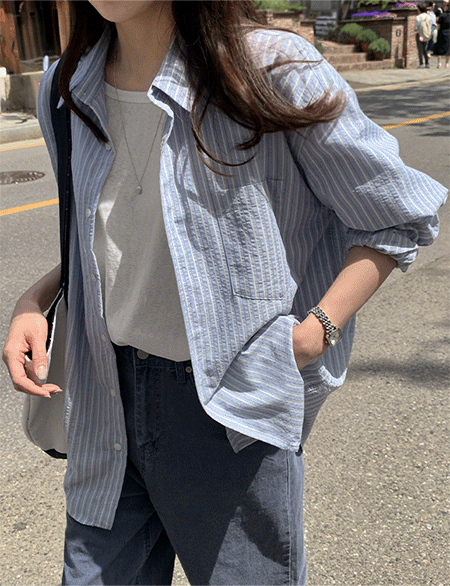 시어서커 条纹 宽松 衬衫 87736