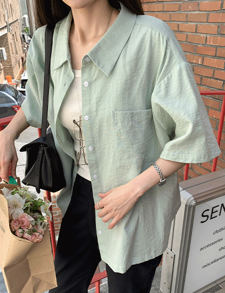 컬러피크닉 宽松 半袖 衬衫 87603