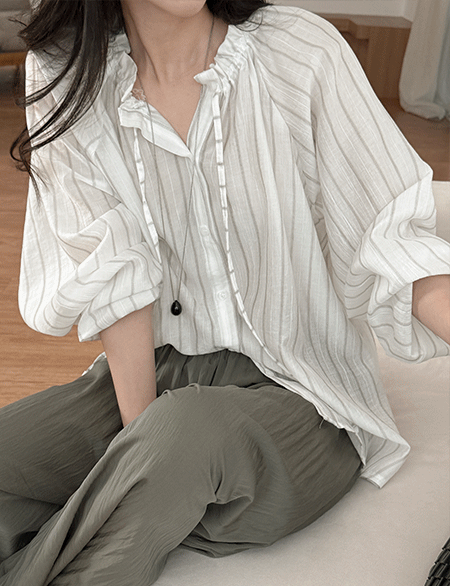 카우린 条纹 넥 鞋带 女衬衫 87841