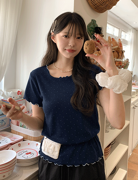 루블랭 配色 褶皱 圆点 半袖 T恤衫 87658